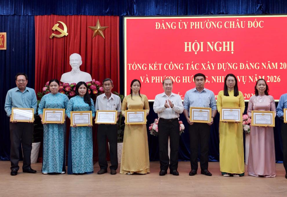 Chiều 30/01, Đảng ủy phường Châu Đốc tổ chức Hội nghị tổng kết công tác xây dựng Đảng năm 2025 và triển khai phương hướng, nhiệm vụ năm 2026.