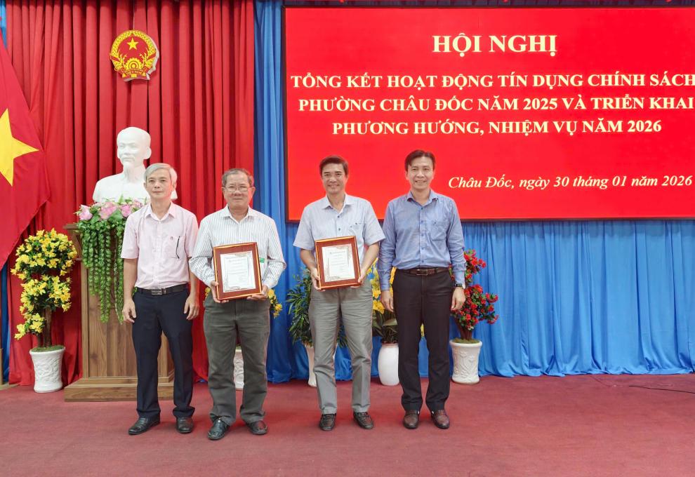 Sáng 30/01, UBND phường Châu Đốc tổ chức Hội nghị tổng kết hoạt động tín dụng chính sách xã hội năm 2025 và triển khai phương hướng, nhiệm vụ năm 2026.