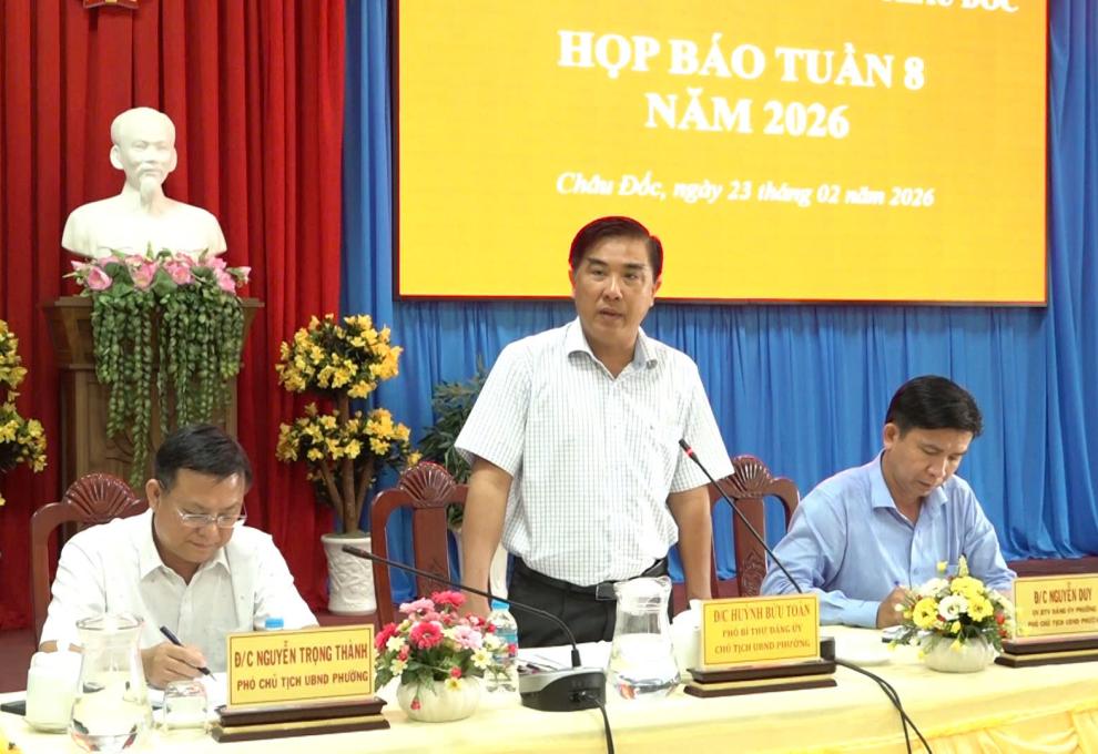 Sáng 23/2, UBND phường Châu Đốc tổ chức họp báo tuần về tình hình tổ chức hoạt động Tết Nguyên đán Bính Ngọ năm 2026.