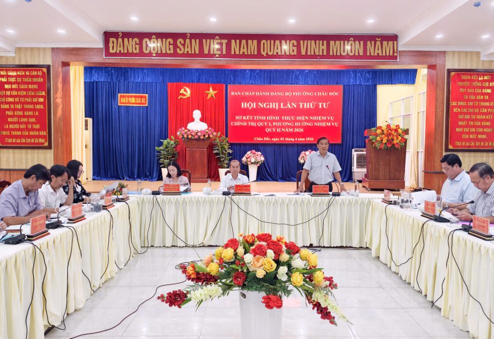 Sáng 2/4, Ban Thường vụ Đảng ủy phường Châu Đốc tổ chức Hội nghị Ban Chấp hành Đảng bộ phường lần thứ tư, khóa I (mở rộng), để đánh giá tình hình thực hiện nhiệm vụ chính trị quý I và đề ra phương hướng, nhiệm vụ quý II năm 2026.