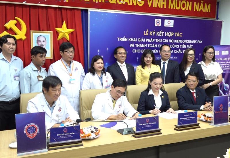 Sáng 3/2, Bệnh viện Đa khoa Châu Đốc phối hợp Ngân hàng Thương mại Cổ phần Kiên Long (KienlongBank) tổ chức Lễ ký kết hợp tác triển khai giải pháp thu hộ Kienlongbank Pay và thanh toán không dùng tiền mặt tại Bệnh viện Đa khoa Châu Đốc.