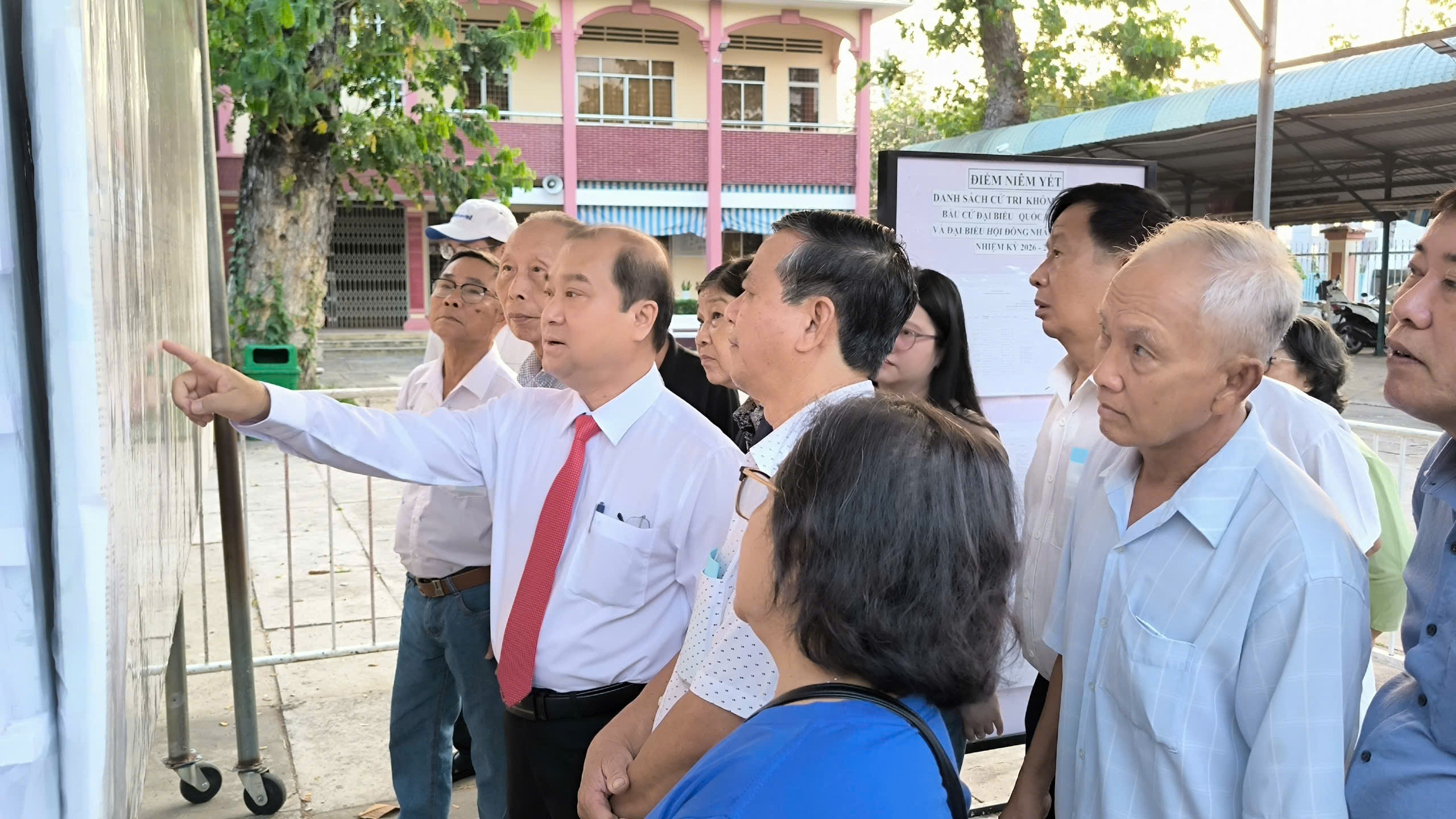PHÓ BÍ THƯ ĐẢNG ỦY, CHỦ TỊCH HĐND PHƯỜNG DỰ KHAI MẠC VÀ BỎ PHIẾU ĐẦU TIÊN TẠI KHU VỰC BỎ PHIẾU KHÓM CHÂU THỚI 3, PHƯỜNG CHÂU ĐỐC