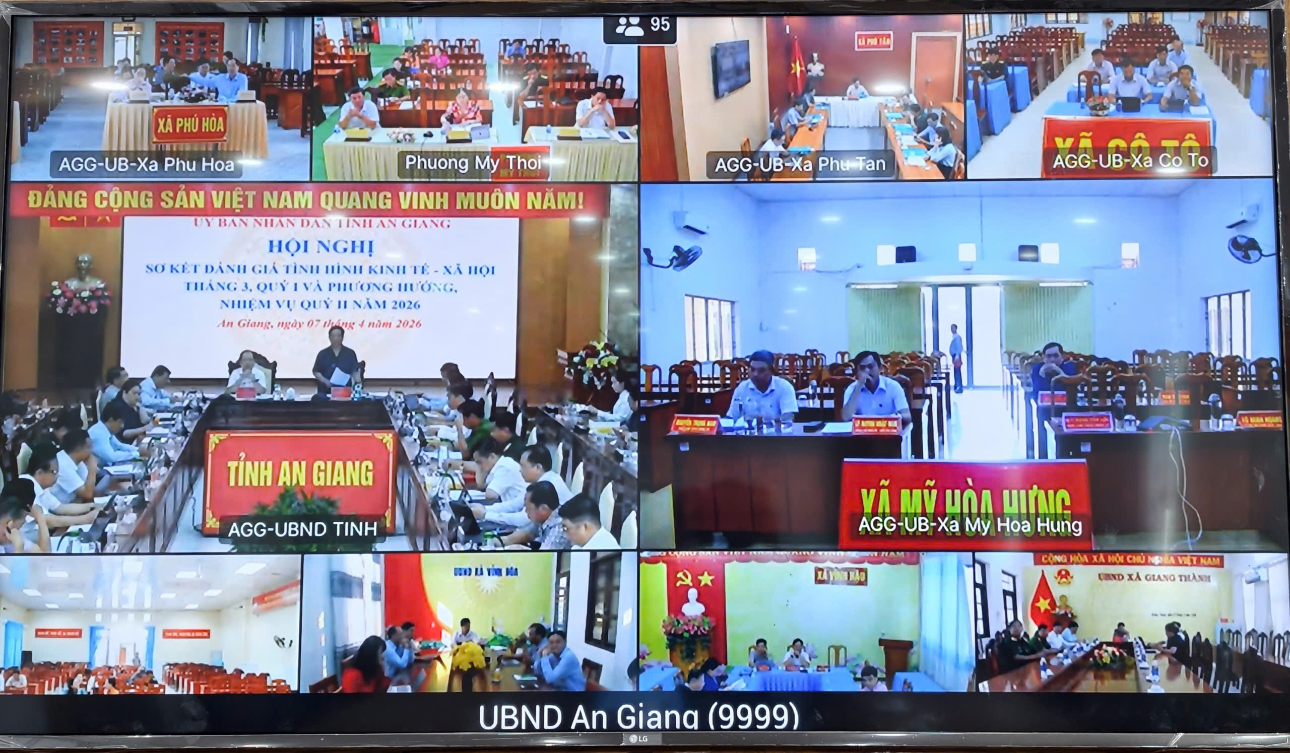 Ngày 7/4, UBND tỉnh An Giang tổ chức Hội nghị sơ kết đánh giá tình hình kinh tế - xã hội tháng 3, quý I và phương hướng, nhiệm vụ quý II/2026. Hội nghị được tổ chức trực tiếp và trực tuyến tới các điểm cầu xã, phường, đặc khu trong toàn tỉnh.