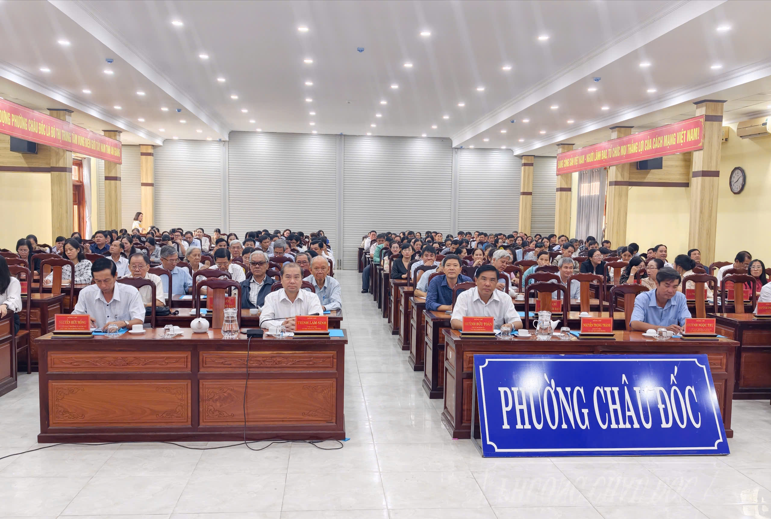 Sáng 28/1, Ban Tuyên giáo và Dân vận Trung ương tổ chức Hội nghị báo cáo viên toàn quốc, thông báo nhanh kết quả Đại hội Đại biểu toàn quốc lần thứ XIV của Đảng. Hội nghị được kết nối trực tuyến tới hơn 3.600 điểm cầu trong cả nước, với sự tham dự của hơn 260.000 cán bộ, đảng viên. Chủ trì hội nghị tại điểm cầu phường Châu Đốc có đồng chí Trình Lam Sinh, tỉnh ủy viên, Bí thư Đảng ủy phường.