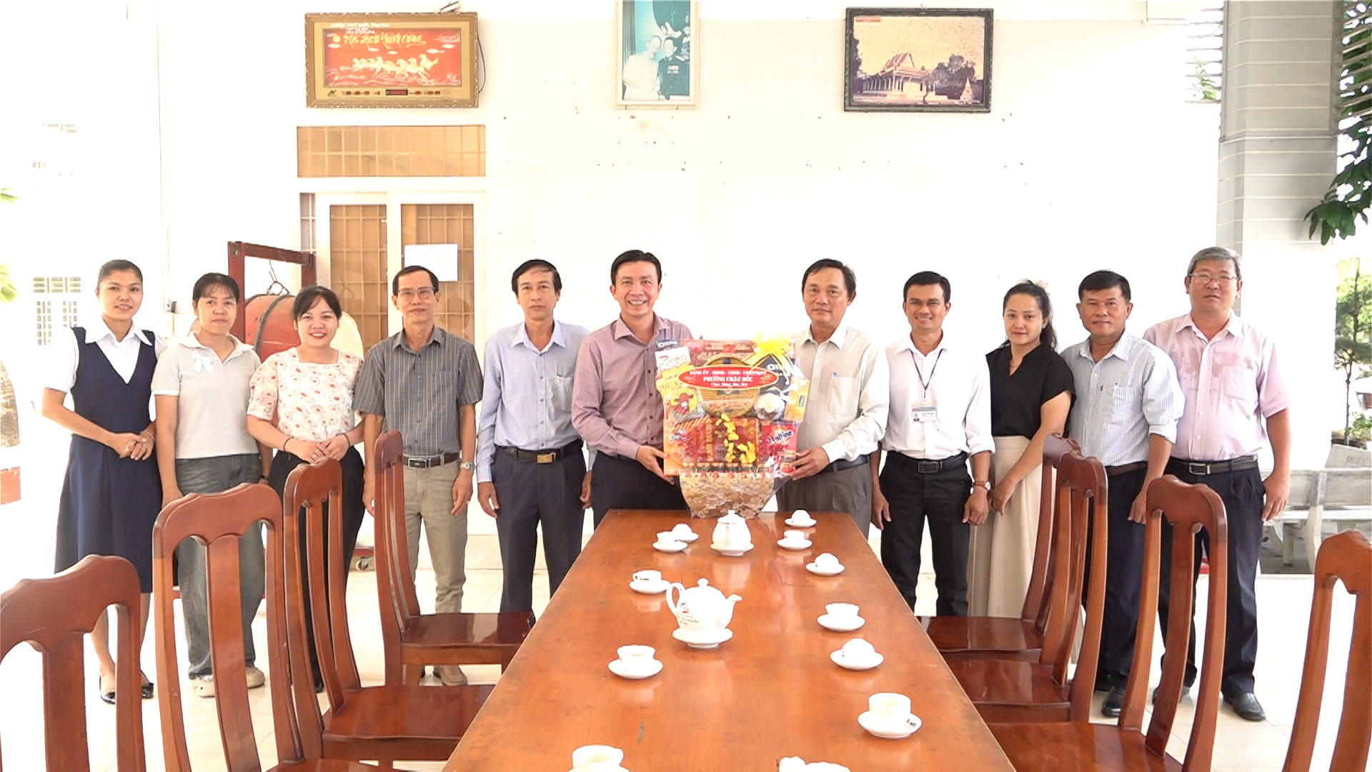 Tại nơi đến, thay mặt đoàn công tác, Phó Chủ tịch UBND phường Nguyễn Duy đã gửi lời chúc mừng năm mới đến Ban Giám hiệu, cán bộ, giáo viên và toàn thể học sinh nhà trường đón Tết cổ truyền dân tộc Chol Chnam Thmay vui tươi, an lành, hạnh phúc. Dịp này, đoàn cũng đã trao tặng quà cho tập thể nhà trường.