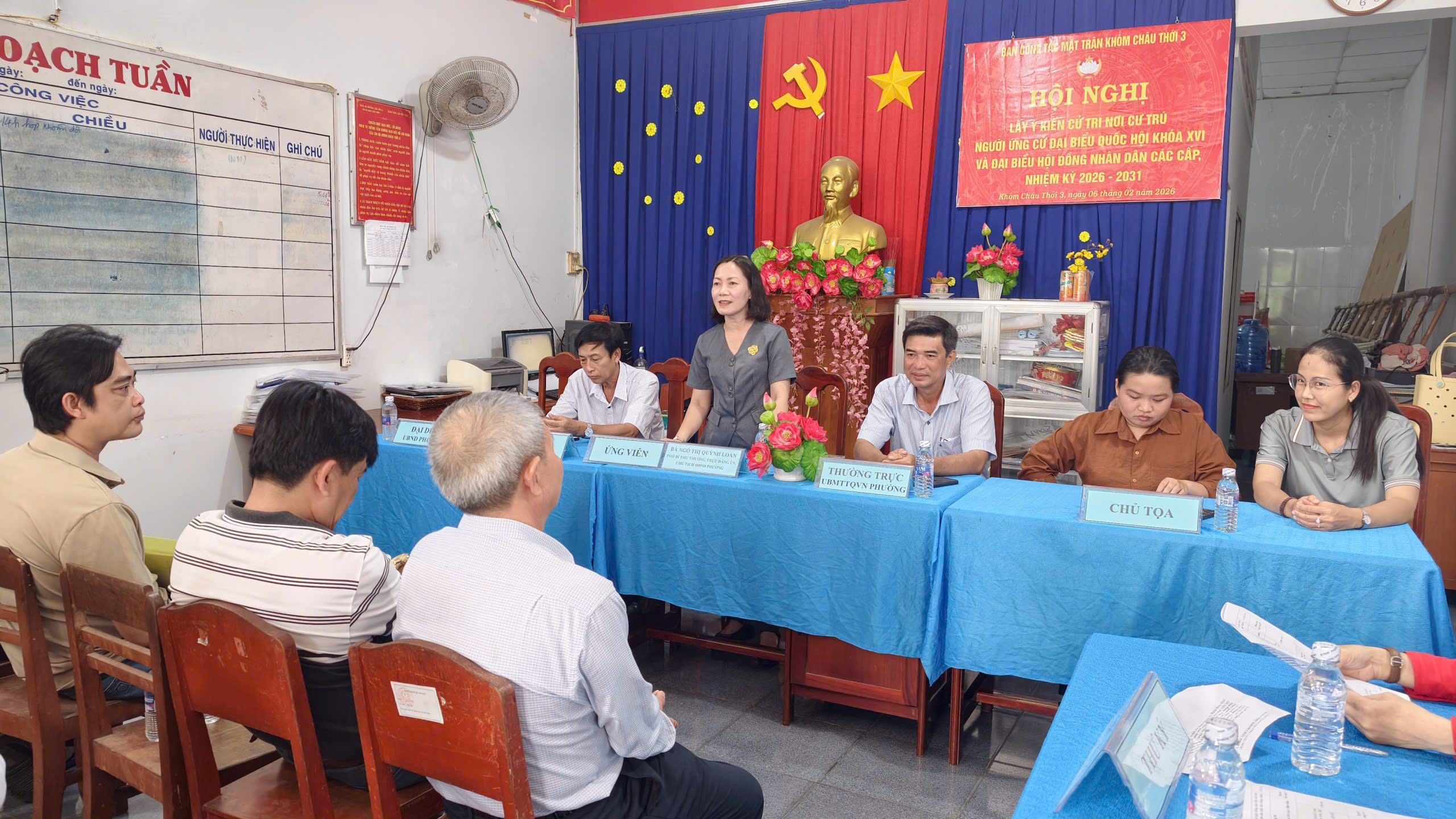 Ngày 6/2, Ban Công tác Mặt trận khóm Châu Thới 3 tổ chức hội nghị lấy ý kiến cử tri nơi cư trú đối với nhân sự được giới thiệu ứng cử đại biểu HĐND các cấp, nhiệm kỳ 2026 – 2031.