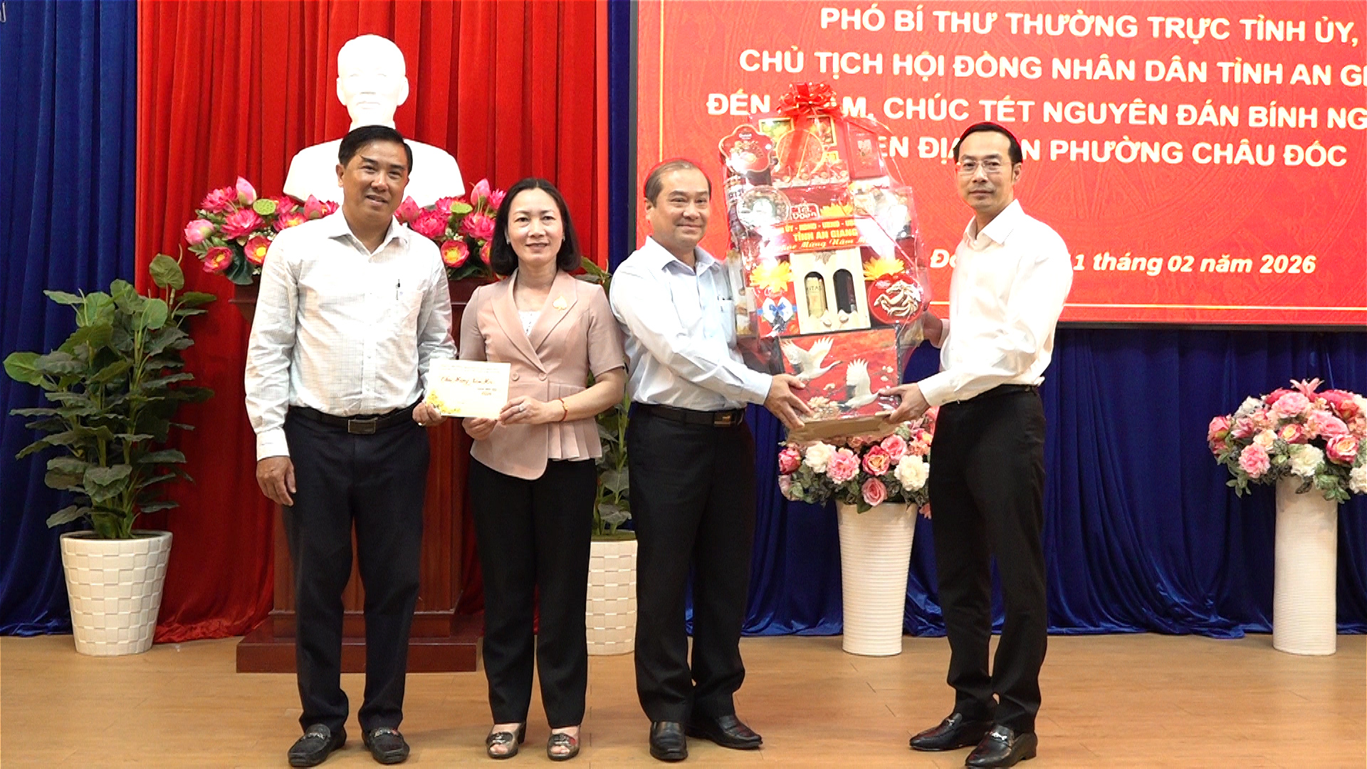 Sáng 11/2, đồng chí Nguyễn Thanh Nhàn – Phó Bí thư Thường trực Tỉnh uỷ, Chủ tịch HĐND tỉnh An Giang dẫn đầu Đoàn công tác Tỉnh ủy, HĐND, UBND, UBMTTQVN tỉnh An Giang đã đến thăm, chúc tết Đảng bộ, chính quyền, nhân dân phường Châu Đốc nhân dịp Xuân Bính Ngọ 2026. Tiếp đoàn có Đ/c Trình Lam Sinh –Tỉnh uỷ viên - Bí Thư Đảng uỷ phường Châu Đốc, Đ/c Ngô Thị Quỳnh Loan - Phó Bí thư Thường trực Đảng ủy – Chủ tịch HĐND phường, Đ/c Huỳnh Bửu Toàn – Phó Bí thư Đảng uỷ - Chủ tịch UBND phường.