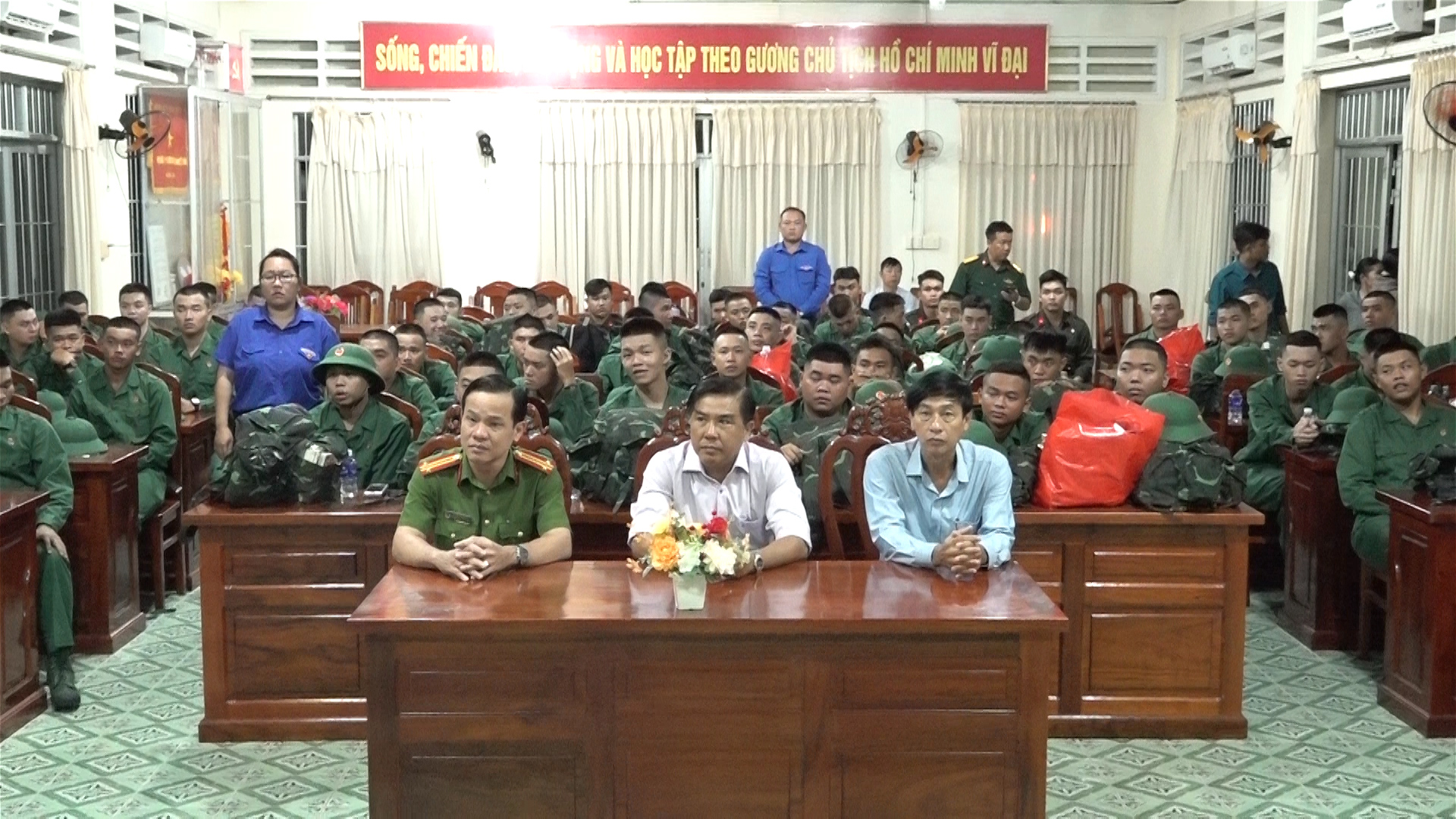 Trong không khí trang trọng và xúc động, các đồng chí lãnh đạo phường đã tặng các phần quà để tiếp thêm động lực và gửi gắm niềm tin đến các thanh niên trước khi lên đường nhập ngũ.