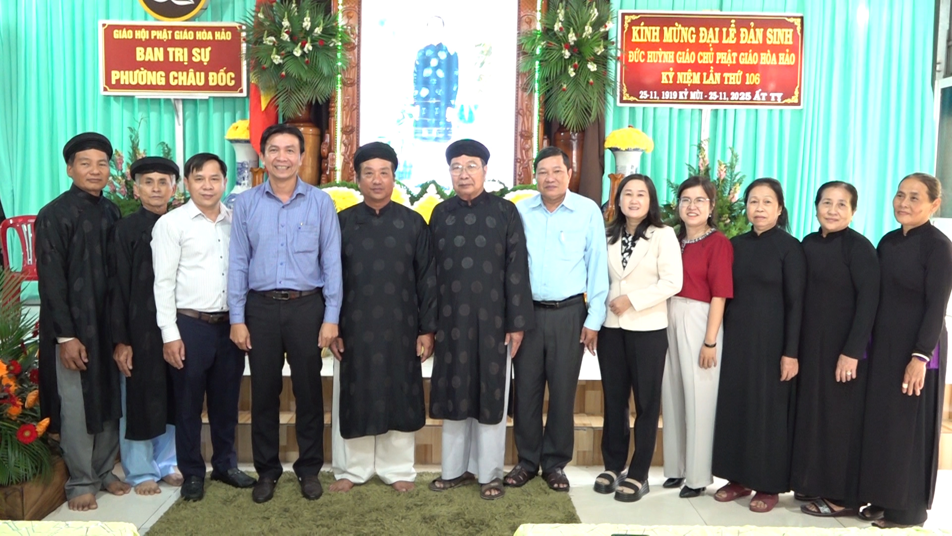 PHÓ CHỦ TỊCH UBND PHƯỜNG CHÂU ĐỐC NGUYỄN DUY THĂM CÁC BAN TRỊ SỰ PGHH NHÂN DỊP 106 NĂM NGÀY ĐẢN SINH ĐỨC HUỲNH GIÁO CHỦ