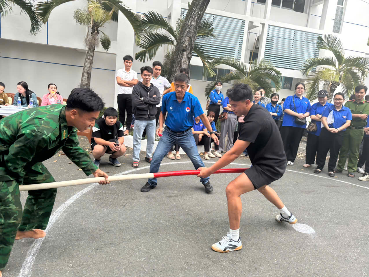 Hoạt động thu hút hơn 100 cán bộ, chiến sĩ, đoàn viên, thanh niên và học sinh trên địa bàn tham gia. Các vận động viên tranh tài ở 2 môn thi đấu là kéo co và đẩy gậy, qua đó tạo nên không khí thi đua sôi nổi, hào hứng. Môn kéo co được tổ chức với 2 nội dung gồm: đồng đội nam 400kg và đồng đội nam – nữ 370kg . Đối với môn đẩy gậy , các vận động viên thi đấu theo từng hạng cân. Ở nội dung nam có 2 hạng cân là trên 60kg đến 65kg và trên 65kg đến 70kg ; nội dung nữ gồm 2 hạng cân là trên 50kg đến 55kg và trên 55kg đến 60kg.