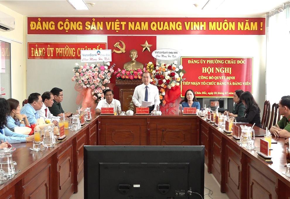 Ngày 4/2, Ban Thường vụ Đảng uỷ phường Châu Đốc tổ chức hội nghị công bố quyết định tiếp nhận tổ chức đảng và đảng viên.